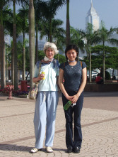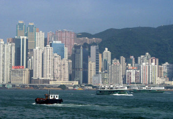 At the seafront in Kowloon - Hong Kong Island in the background