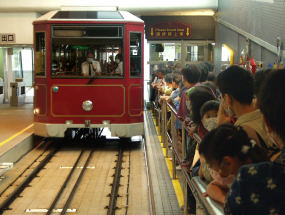 The Peak Tram (Everybody is wearing a face mask because of Sars!)