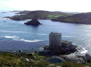 Cromwell's Castle - view across Tresco Sound to the island of Brhyer